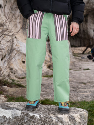 Per questo ricicliamo tessuti abbandonati, li trasformiamo a mano in Italia e gli diamo una nuova vita, creando Braghe uniche, artigianali, sostenibili e etiche. Ogni pantalone racconta storie diverse, come chi le indossa.