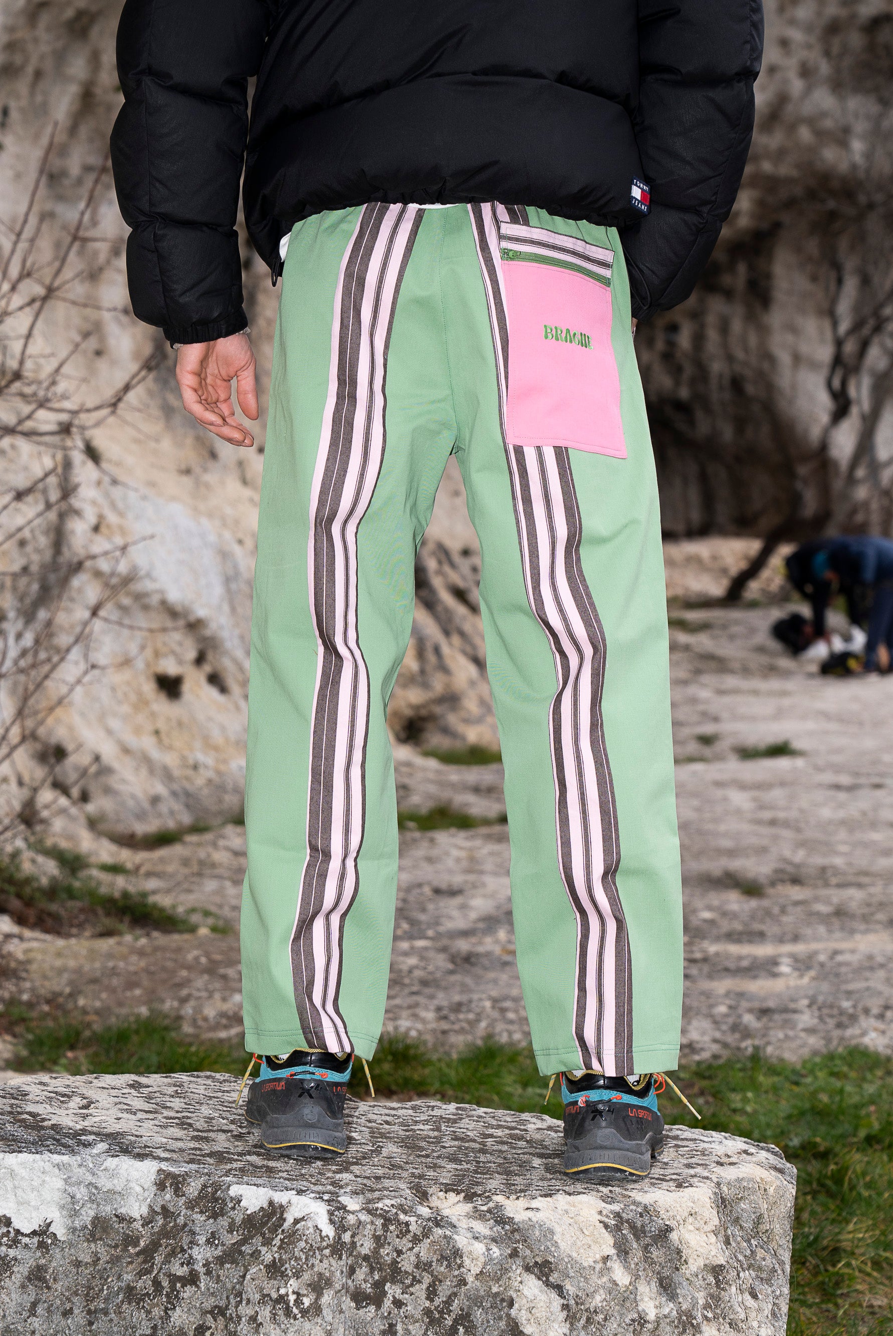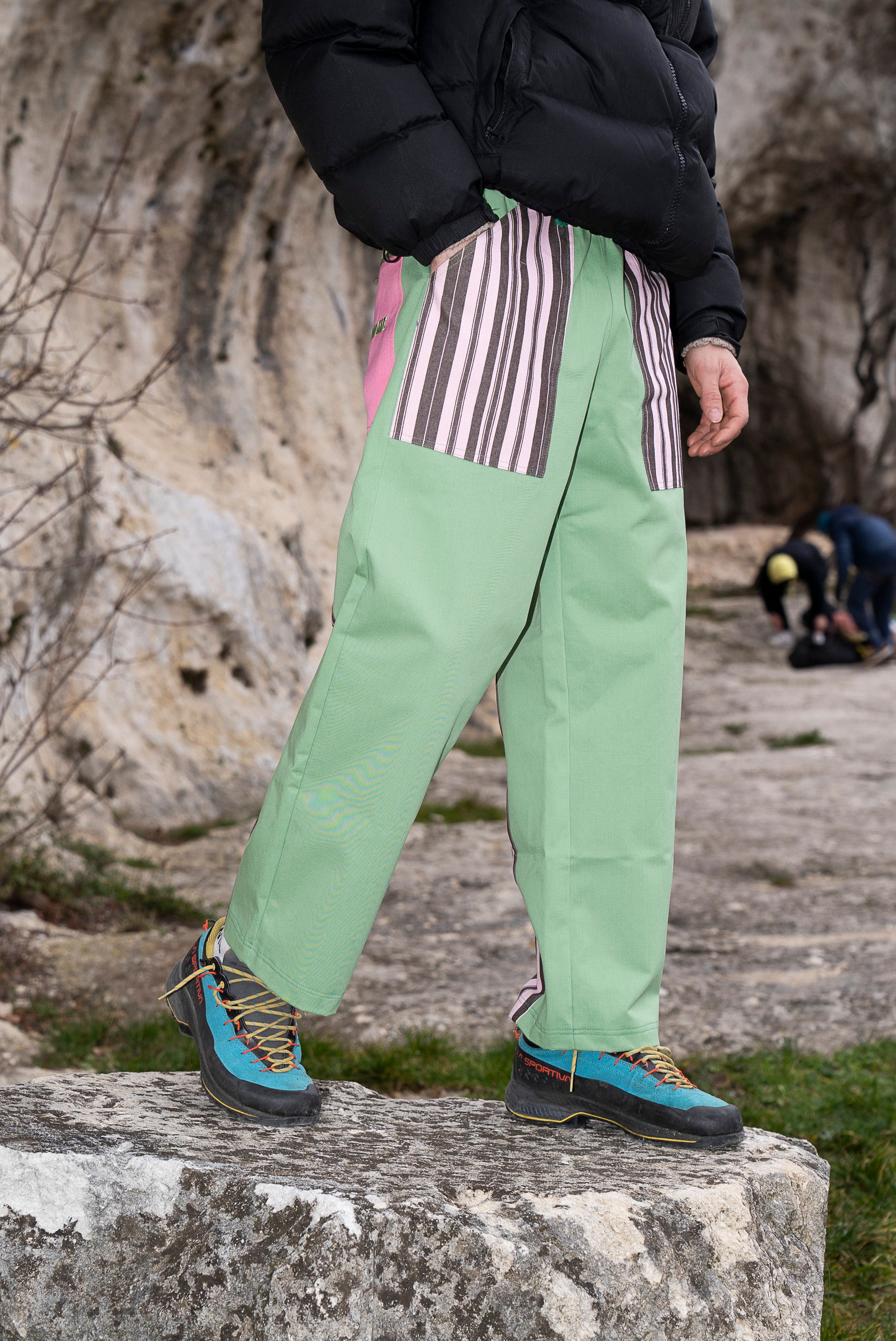 Averle significa dare nuova vita a tessuti di qualità scartati dall’industria della moda e far parte di una tribù fuori dall’ordinario. Cucite a mano da artigianǝ italianǝ usando stoffe riciclate, sono pensate per essere i pantaloni più comodi che indosserai: libertà totale sulla roccia, comfort pazzesco nella vita di tutti i giorni.
