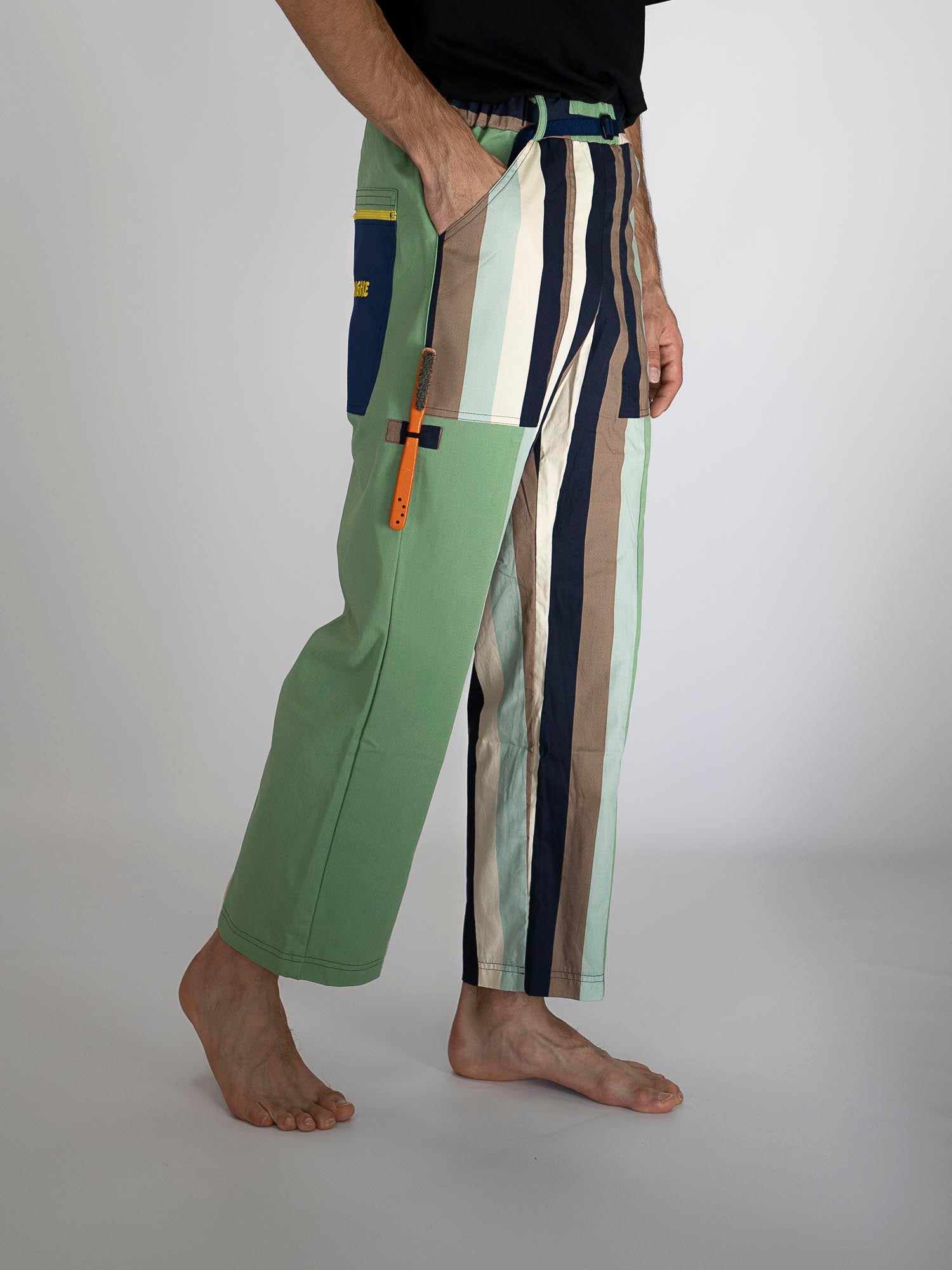 Averle significa dare nuova vita a tessuti di qualità scartati dall’industria della moda e far parte di una tribù fuori dall’ordinario. Cucite a mano da artigianǝ italianǝ usando stoffe riciclate, sono pensate per essere i pantaloni più comodi che indosserai: libertà totale sulla roccia, comfort pazzesco nella vita di tutti i giorni.
